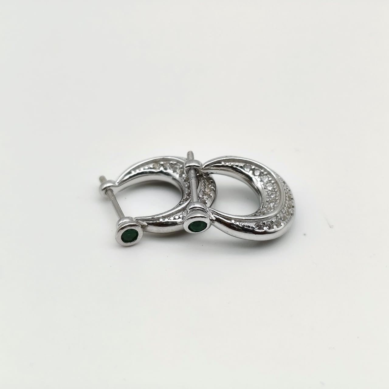 Make a refined yet bold statement with these elegant silver-tone hoop earrings featuring vibrant green gemstone accents. Designed with a sleek circular silhouette, each hoop is beautifully detailed with shimmering stones along the inner curve, adding subtle sparkle from every angle.