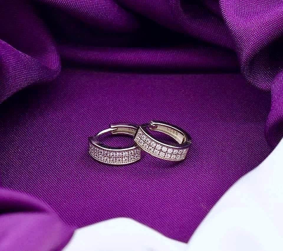 Add effortless glamour to your look with these stunning 925 Sterling Silver Pavé Hoop Earrings. Designed with multiple rows of shimmering stones, these hoops reflect light beautifully, creating a luxurious sparkle from every angle.